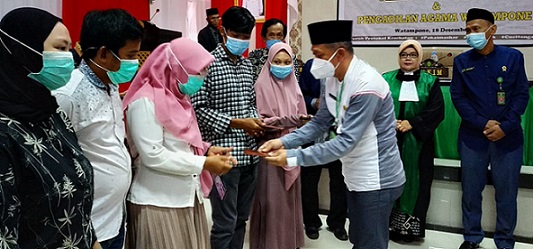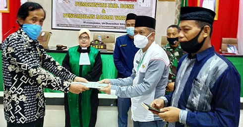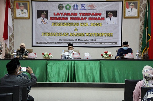 Watampone, Jum’at, 18 Desember 2020, bertempat di Aula Rumah Jabatan Bupati kabupaten Bone, Pengadilan Agama Watampone bekerja sama dengan Pemerintah Daerah kabupaten Bone menyelenggarakan Sidang Terpadu Itsbat Nikah.