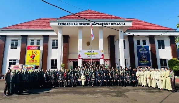 Watampone - Sabtu, 19 Agustus 2023. Bertempat di Halaman Kantor Pengadilan Negeri Watampone, Ketua Pengadilan Agama Watampone, Ibu Dra. Hj. Heriyah, S.H., M.H. mengikuti Upacara HUT Mahkamah Agung RI ke-78. Ketua Pengadian Negeri Watampone, Bapak Safri, S.H., M.H. bertindak sebagai Inspektur Upacara, dan Mario Sodikim, S.H. bertindak sebagai Pemimpin Upacara. Upacara dihadiri oleh seluruh pegawai, baik dari Pengadilan Agama maupun Pengadilan Negeri. Pelaksanaan upacara berlangsung dengan lancar dan khdimat.