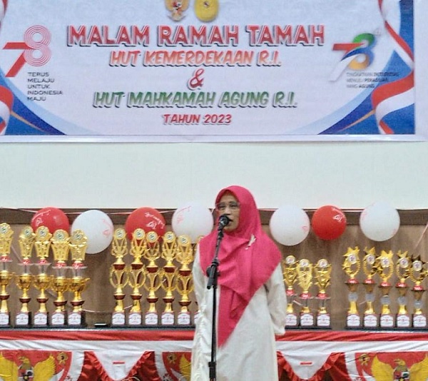 Watampone - Senin, 21 Agustus 2023. Bertempat di Aula Pengadilan Agama Watampone, diselenggarakan acara Ramah Tamah HUT Kemerdekaan RI dan HUT MA RI. Ketua Pengadilan Agama Watampone, Ibu Dra. Hj. Heriyah, S.H., M.H. membuka acara tersebut, dalam sambutannya pada malam hari ini diselenggarakan acara malam ramah tamah HUT Kemerdekaan RI dan HUT MA RI yang hanya selisih 2 hari dan dengan diselenggarakan lomba-lomba dan turnamen olahraga (tennis lapangan dan tennis meja) diharapkan dapat meningkatkan rasa kekeluargaan dan sportivitas. Turut hadir Wakil Ketua, Panitera dan Sekretaris Pengadilan Agama Watampone, serta Bapak dan Ibu Hakim juga seluruh pegawai baik jajaran Kepaniteraan dan Kesekretariatan dan juga turut hadir Dharmayukti Karini dan Purnabakti. Acara berjalan dengan lancar dan penuh keakraban.